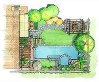 Melukis pelan landskap taman mini berkonsepkan jepun.